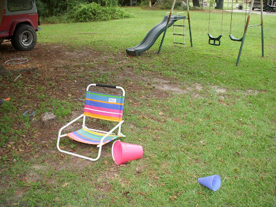 The first one is just funny. That is Jamie's "perch" when he sits outside with the girls. We keep it simple around here! I have to say...this gorgeous cooler weather makes me want my OWN house so much more! I could just sit outside and enjoy this weather all day.